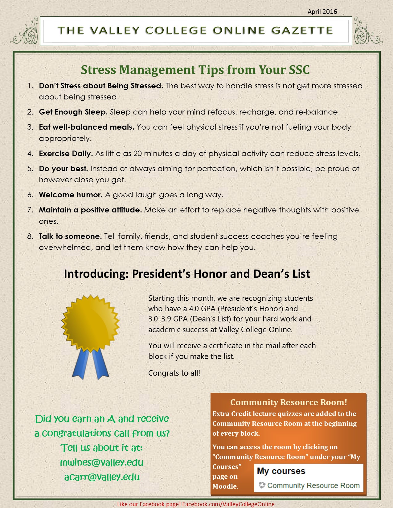 April Valley College Online Gazette!