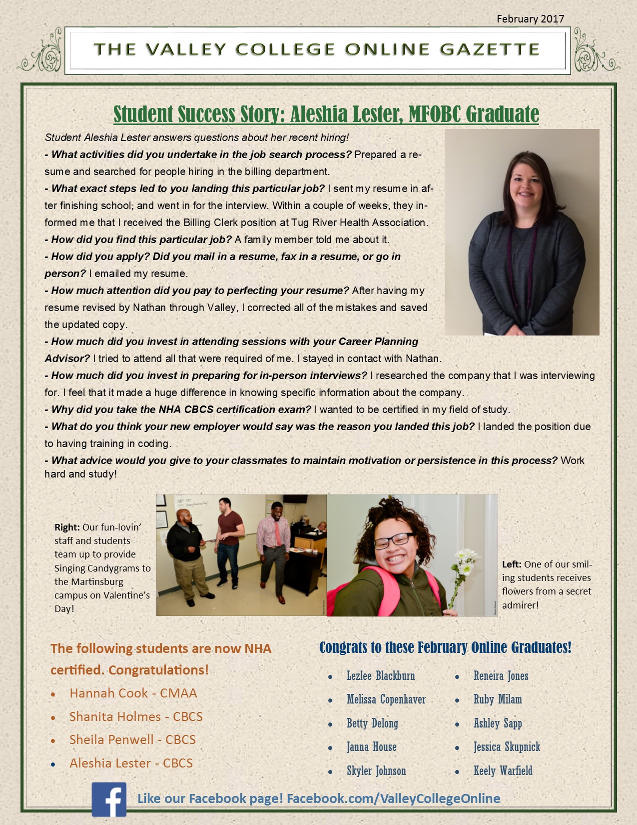 February Valley College Online Gazette!