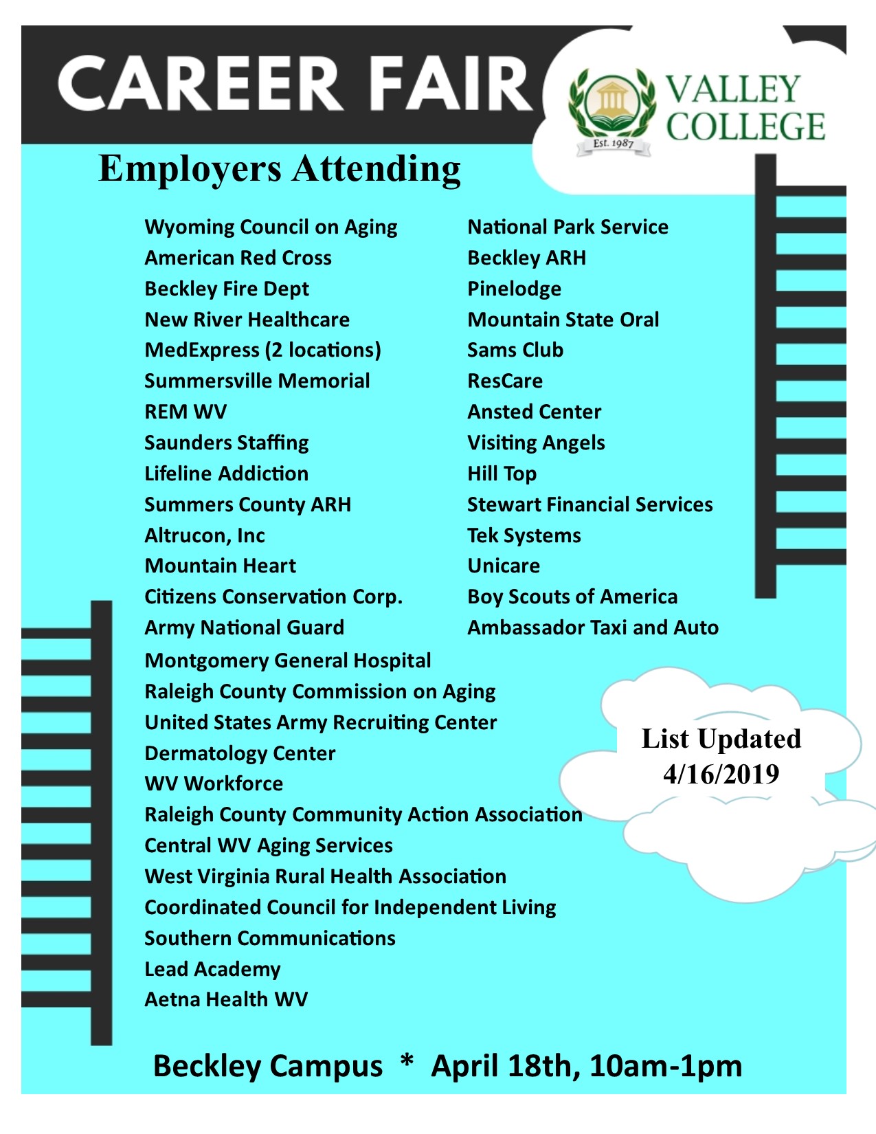 Beckley area students~ please join us at the Beckley Career Fair this Thursday on April 18 from 10-1!!
