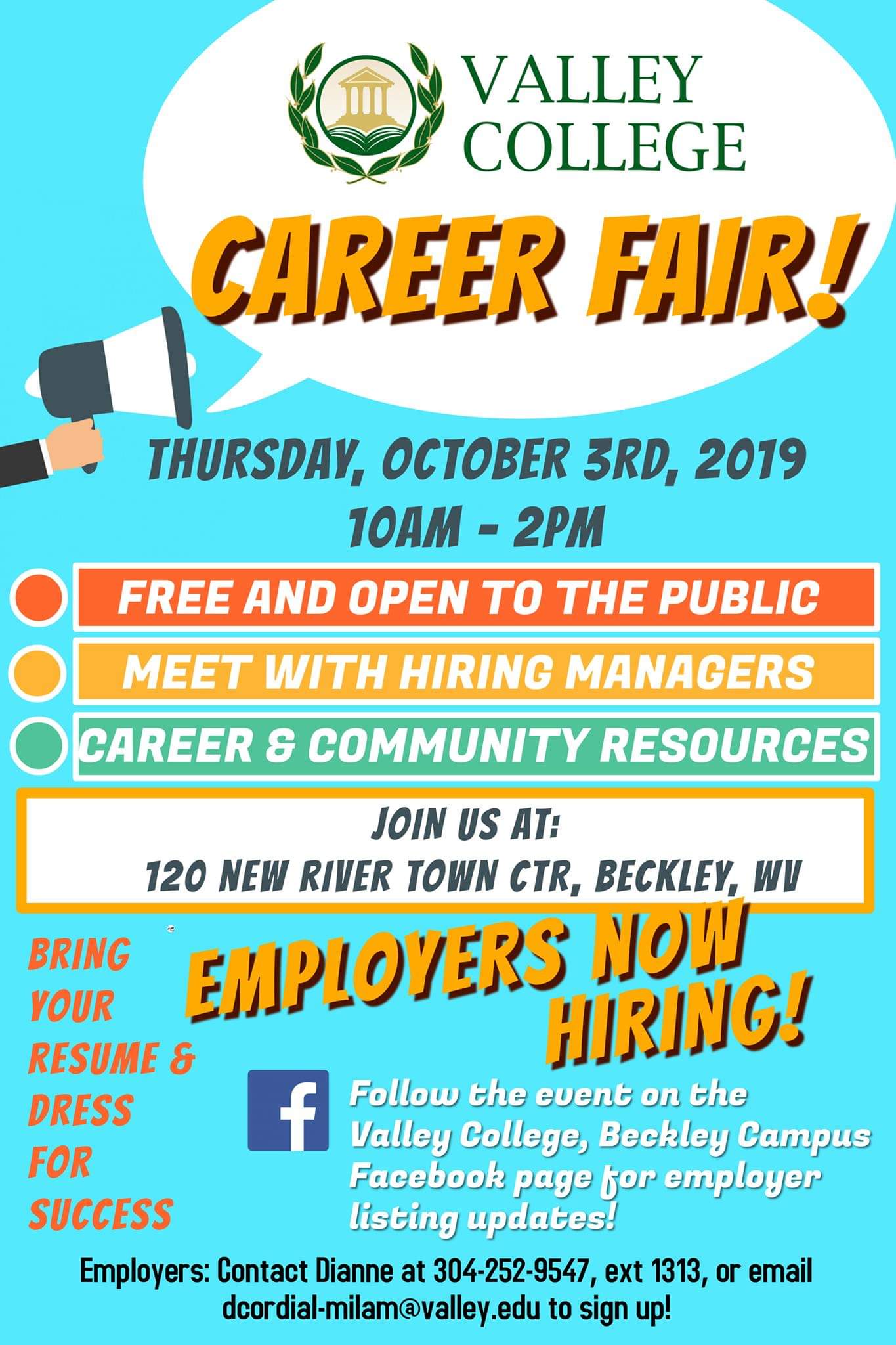 Career Fair Alert! Tomorrow is the day!! Beckley and surrounding areas- all are invited out to the Valley College Career Fair!!