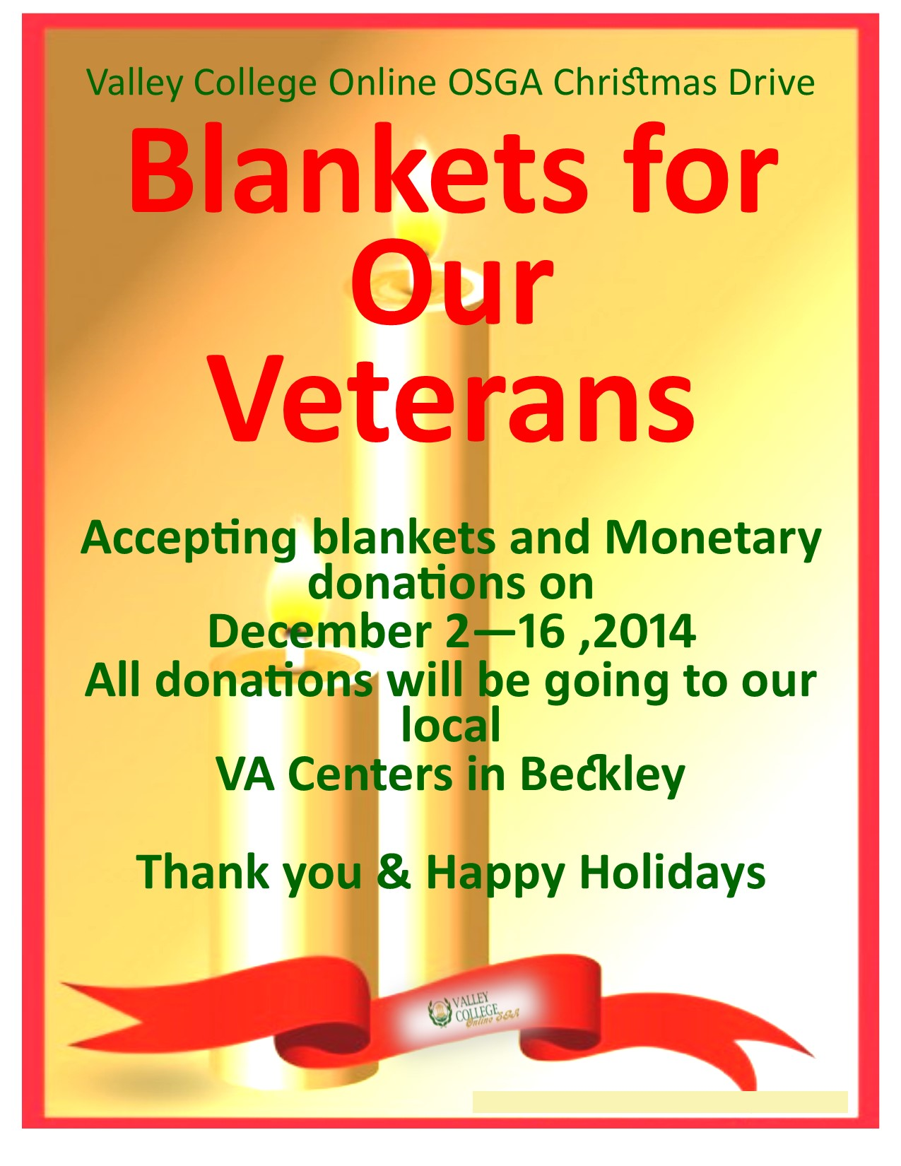 Blanket Drive for our Veterans! To find the closest drop off location, contact an OSGA member today!