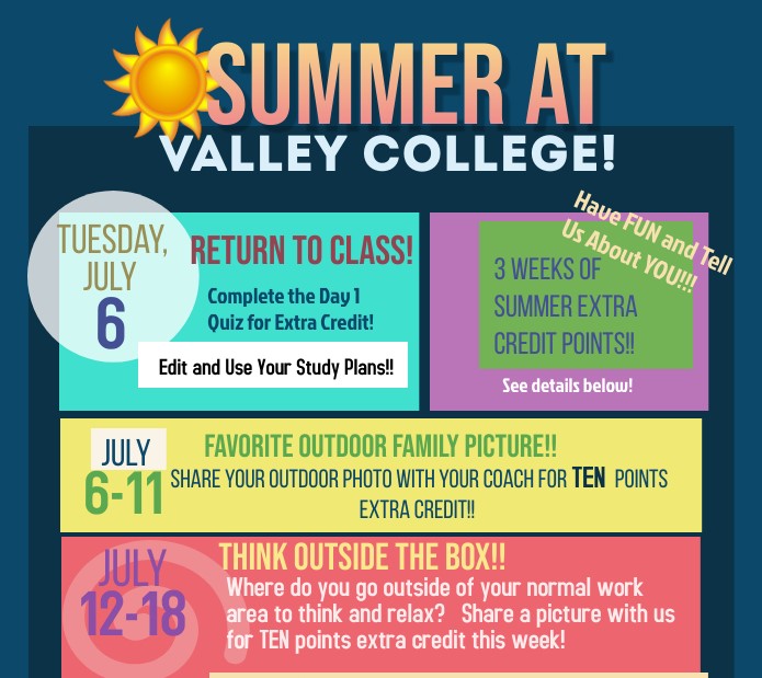 #ValleyCollegeOnline #SummerAtValley #welcomeback