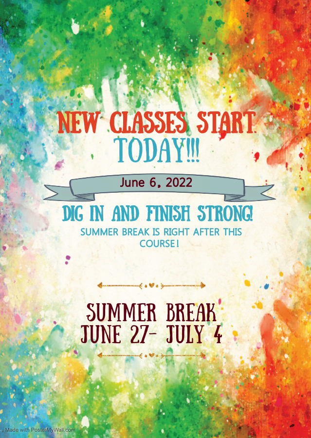 New Classes Begin Today!!