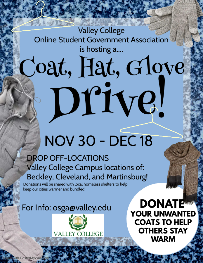 You can drop off hats, gloves, and coats to keep your community warm!!